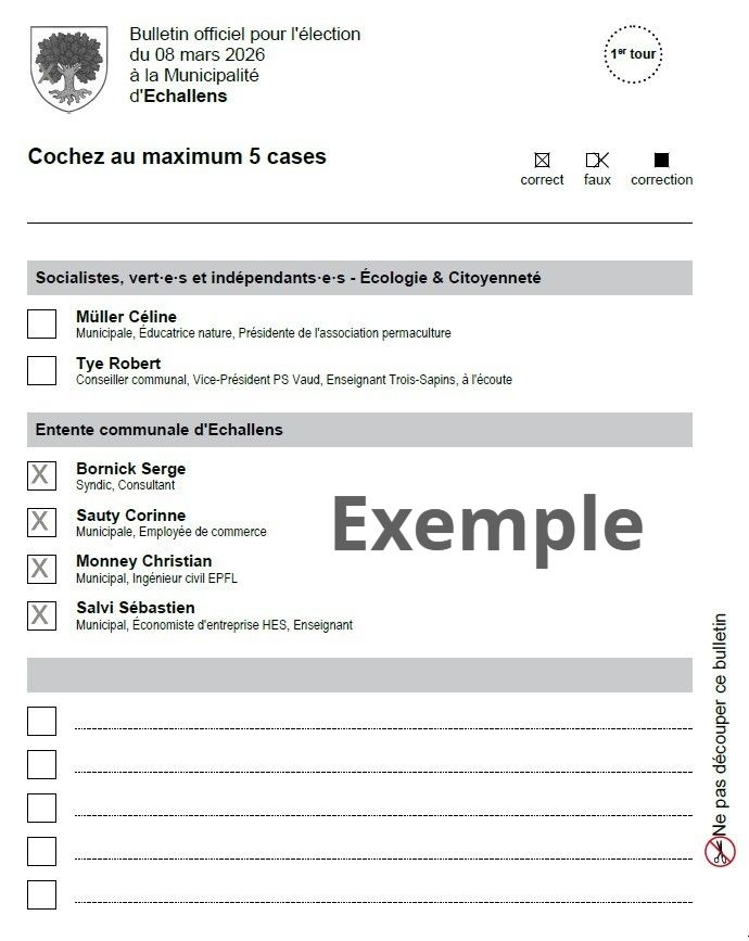 Afin de donner un maximum de suffrages à l’Entente, nous vous encourageons à voter, et à appeler vos proches à voter compact, à la Municipalité et au Conseil communal.